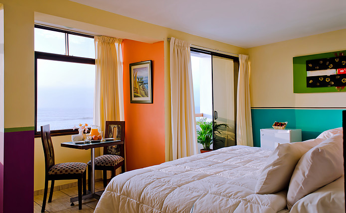 Todas las habitaciones tienen vista al mar y en sus espacios sobresale el color y la madera.